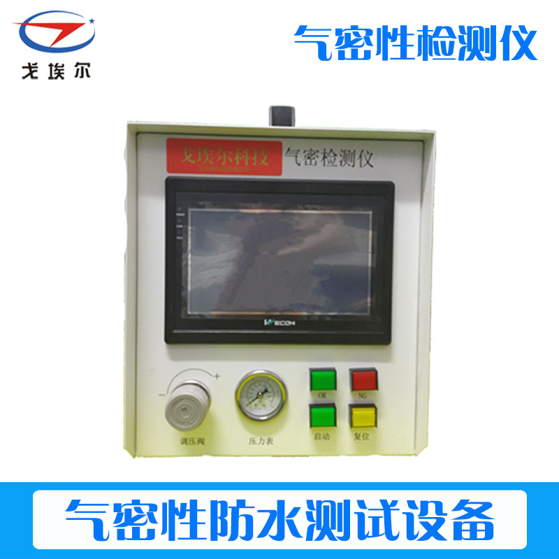 戈埃爾氣密性防水測(cè)試儀別名又叫氣密性檢測(cè)儀,防水等級(jí)測(cè)試儀,密封測(cè)試儀。測(cè)試原理是:根據(jù)產(chǎn)品的外形做一下密封的檢測(cè)模具來模仿使用的環(huán)境,使用接通氣密性防水測(cè)試儀的氣口。并設(shè)置好IP65防水等級(jí)測(cè)試需要的參數(shù),如測(cè)試壓力,測(cè)試時(shí)間,穩(wěn)定時(shí)間,與允許的最大泄漏值,就可以進(jìn)行自動(dòng)化的ip65防水等級(jí)測(cè)試了。