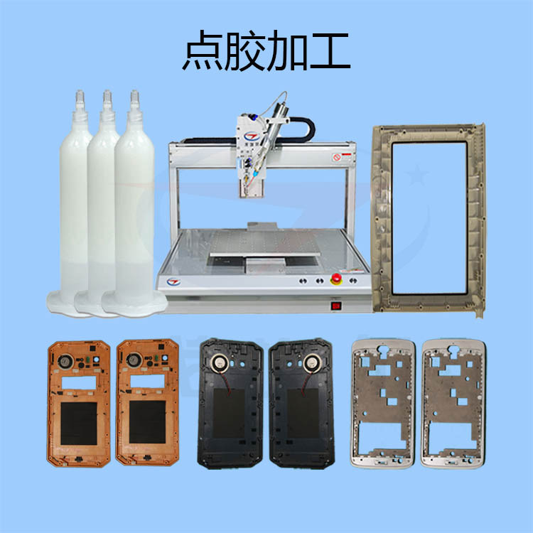 熱壓結(jié)構(gòu)膠點(diǎn)膠加工是依序?qū)ぜM(jìn)行點(diǎn)膠、熱壓合,然后靜置工件,待使用于壓合的膠體冷卻凝固。熱壓結(jié)構(gòu)膠點(diǎn)膠加工所采用的熱壓結(jié)構(gòu)膠是一種固化或干燥后具有一定性能的一種膠黏劑,它通常以基體樹(shù)脂和其他填料組成,通過(guò)基體樹(shù)脂的粘接作用把其他輔助填料結(jié)合在一起,形成性能優(yōu)良的膠體,實(shí)現(xiàn)被粘材料的良好的連接。