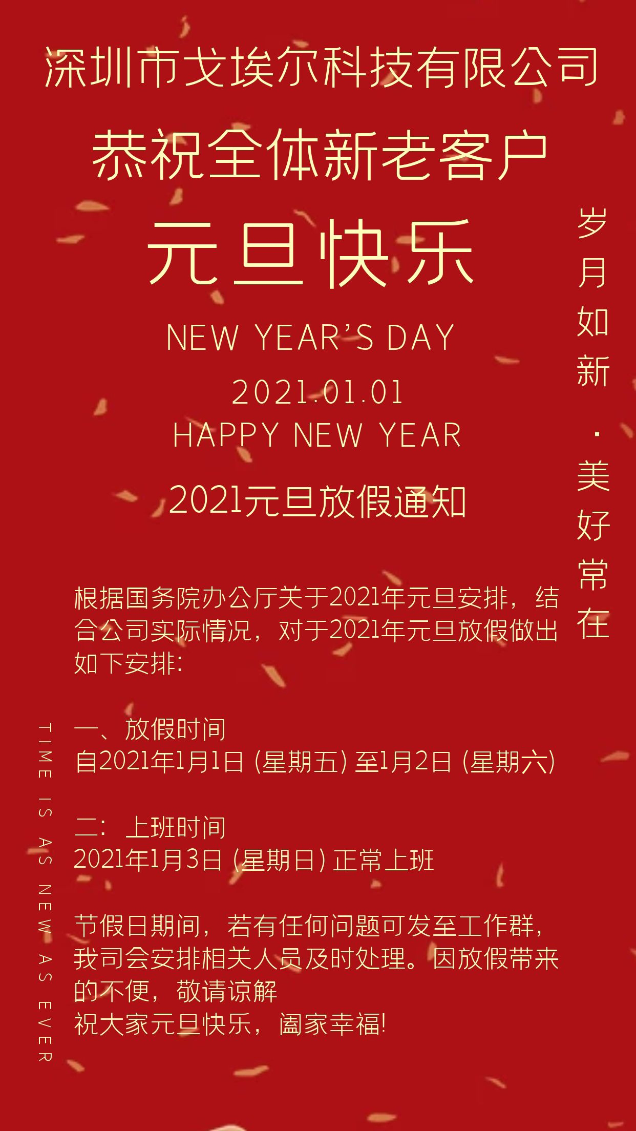 在此,深圳市戈埃爾科技有限公司全體同仁預(yù)祝大家在新的一年里:祝大家身體健康,闔家歡樂,祝您事業(yè)萬事順意,牛氣沖天!